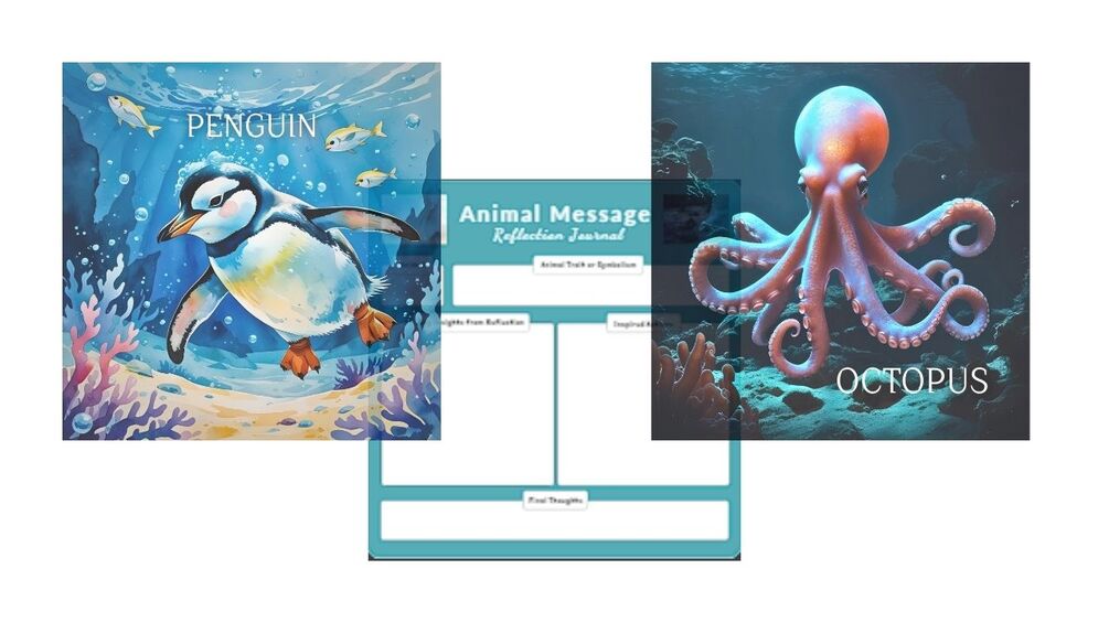 Water Animals Wall Art set of 10 with Animal Message Reflection Journal (12x12") | Creative Self-Discovery Connection to Nature's Wisdom